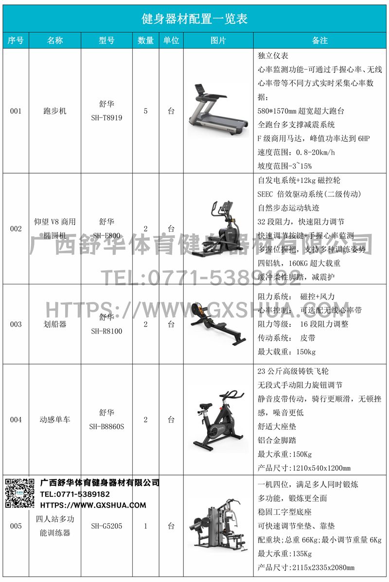 1.leyu.乐鱼V9跑步机SH-T8919*5台-580*1570mm超宽超大跑台-跑感舒适,跑台整体安全稳定;全跑台多支撑减震平台,保证跑台超强支撑力,达到180kg支撑,满足专业健身房需求。F级商用马达-超强马达,AC 3.0HP 交流,峰值功率达到6HP,F级商用品质。速度范围达到0.8-20km/h;V9跑步机可实现跑台扬升功能,坡度范围-3~15%,满足客户不同的锻炼需求。