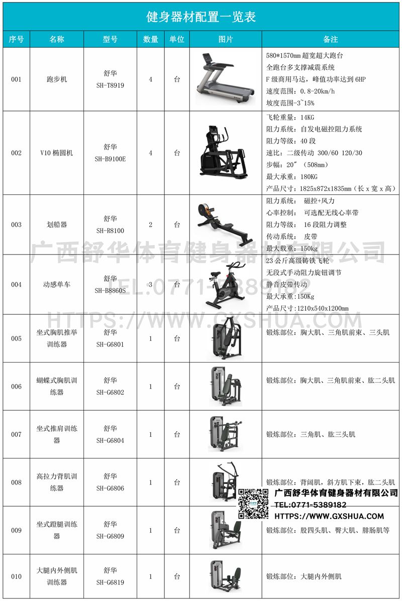 大飞鸟(1台)史密斯机(1台),多重可调节练习椅(1台),腹肌训练器(1台),10付哑铃套组(1套),可调哑铃凳(1张),可以实现对不同肌肉群的针对性训练,满足肌肉训练需求,全方位激活身体机能。