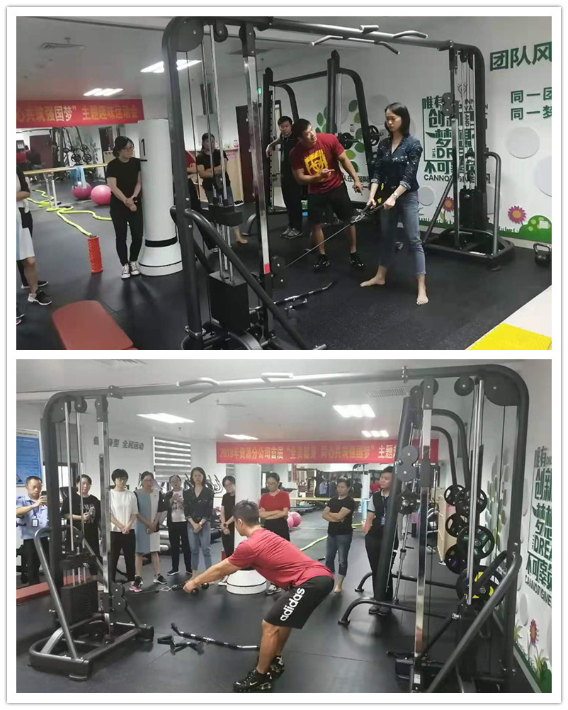 2019年8月26日,南宁某集团职工健身房自6月在广西leyu.乐鱼采购室内健身器材以来,广西leyu.乐鱼根据其职工的男女比例及健身需求,为该集团员工提供健身教练上门免费培训健身器材使用及提供健身知识讲座,科学的运动教学指导。经过有趣互动交流,让职工在轻松愉悦的气氛下感受到运动的乐趣。