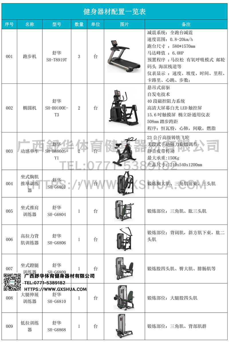 1.leyu.乐鱼V9+跑步机SH-T8919T*3台-V9+采用全跑台减震设计,为跑者提供舒适的落脚地感和稳定的跑步支撑,良好的缓冲防护,降低膝关节受伤风险。商用大跑台,为跑者提供从容奔跑空间,180kg承载力,580*1570纯跑台面积,满足专业健身需求。V9+采用F级商用马达,6HP峰值马力,20km/h最高速度,提供源源不断的动力。