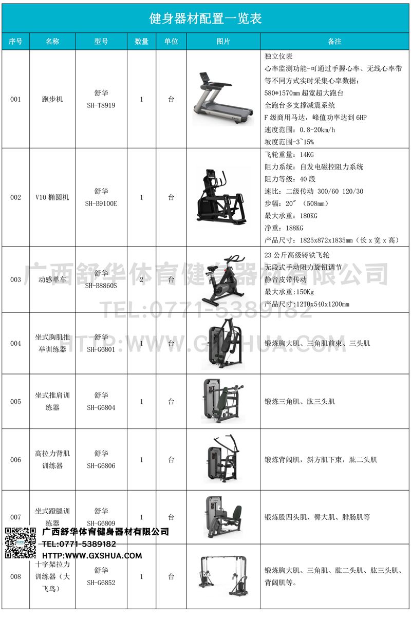1.leyu.乐鱼V9跑步机SH-T8919*4台-580*1570mm超宽超大跑台-跑感舒适,跑台整体安全稳定;全跑台多支撑减震平台,保证跑台超强支撑力,达到180kg支撑,满足专业健身房需求。F级商用马达-超强马达,AC 3.0HP 交流,峰值功率达到6HP,F级商用品质。速度范围达到0.8-20km/h;V9跑步机可实现跑台扬升功能,坡度范围-3~15%,满足客户不同的锻炼需求。