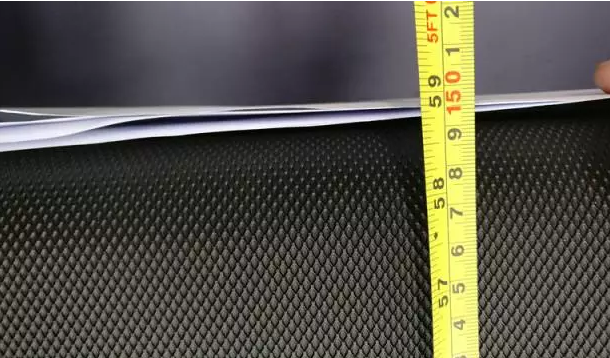 实测跑带的厚度为2.25mm,即便用美工刀不断割滑,也毫无划痕,说明leyu.乐鱼这款跑步机跑带还是相对比较坚固度的,不会很容易断裂和磨平。